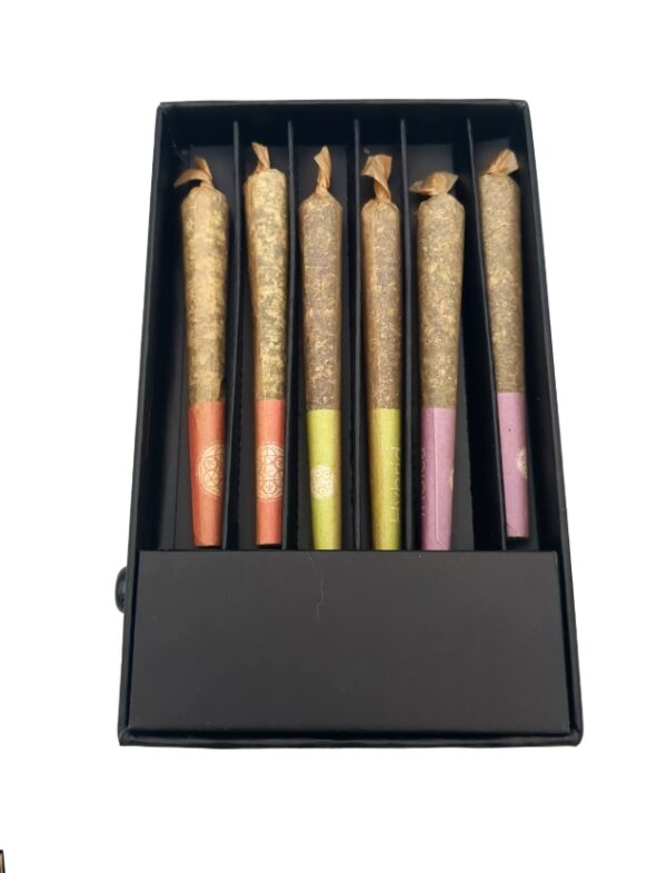 This Fresh Connection Flight Pack contains 6, .5g prerolls: 2 Gas Leak (I), 2 MAC 31(S) (I), 2 Dantes Inferno (H).