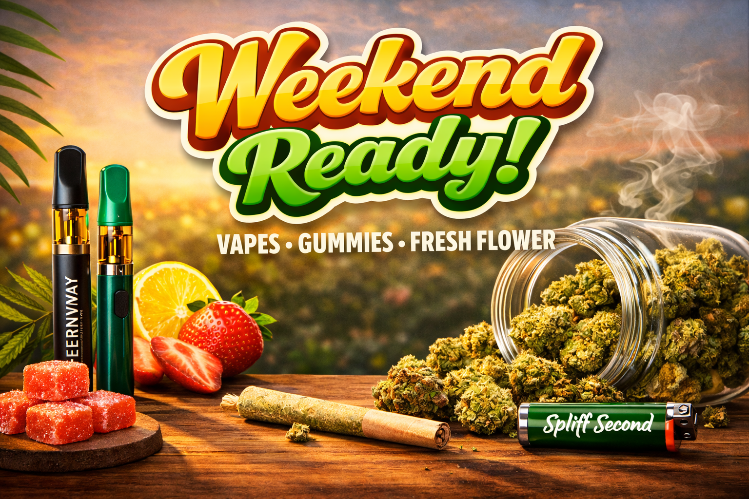 Whether you’re recovering from the storm or gearing up for the weekend, Spliff Second has you covered. We’ve curated a lineup of our most popular vapes, gummies, and fresh flower so you can relax, recharge, and catch the perfect vibe.