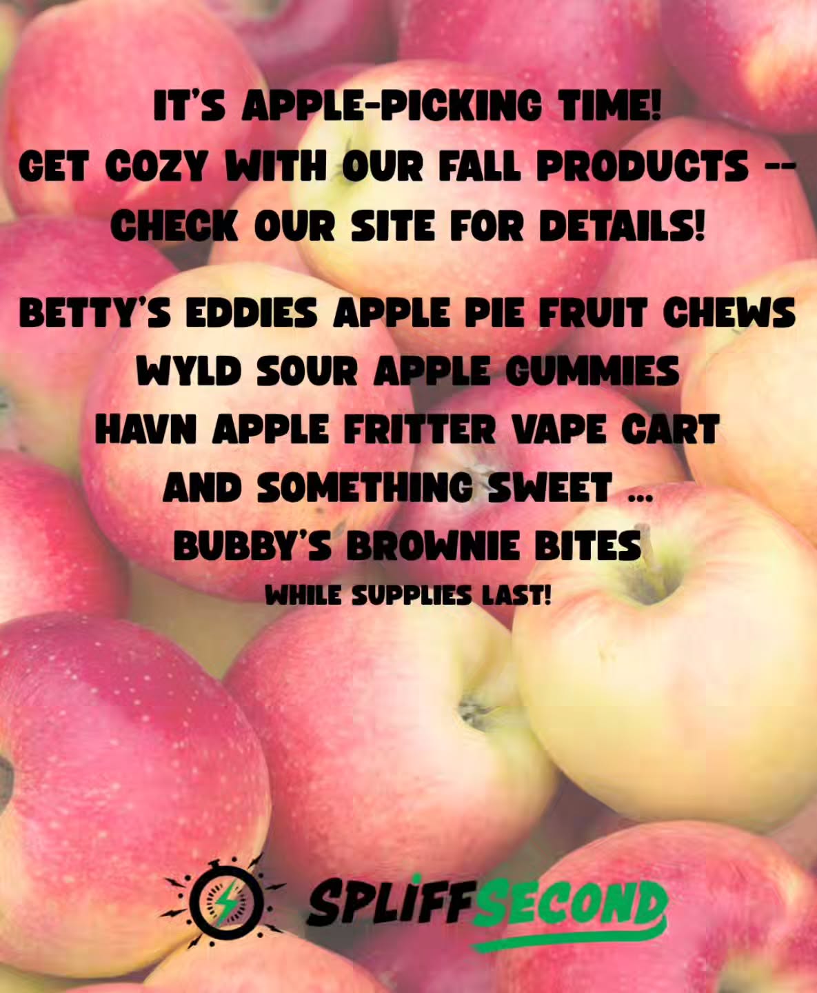 Hooray, it’s Sweater Weather! Even more reason to get your Fall treats delivered. Spliff has apples galore — plus some sweet treat brownie bites to warm your soul.